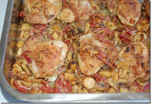 Frango no forno com cogumelos, bacon e alecrim – In the mood for food